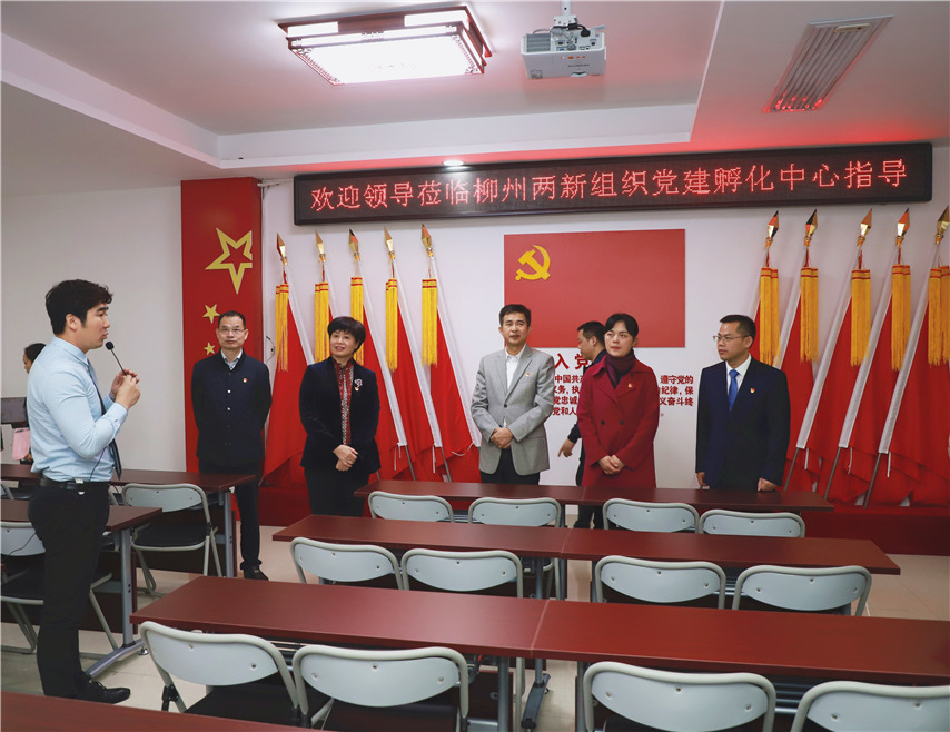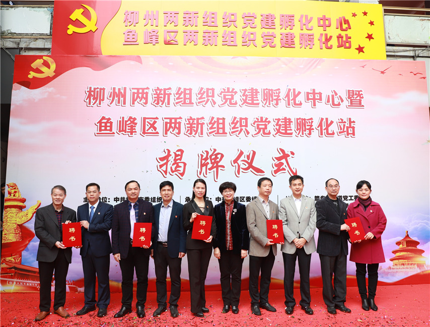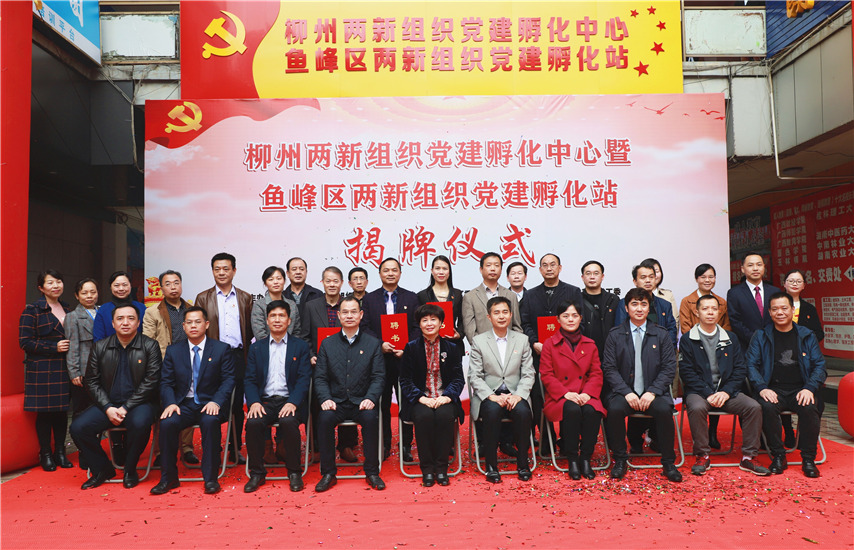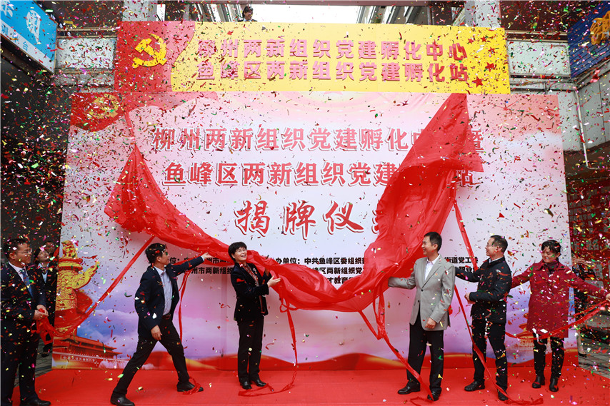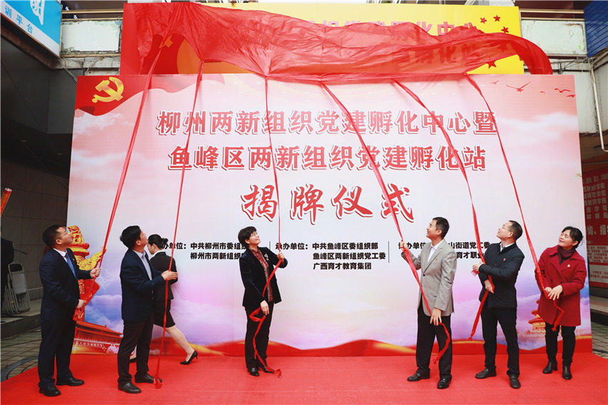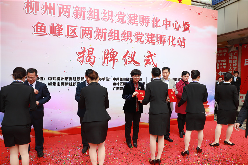 領(lǐng)導(dǎo)們共同為柳州兩新組織黨建孵化中心暨魚峰區(qū)兩新組織黨建孵化站揭牌