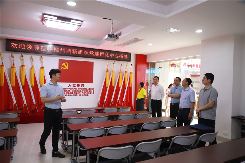 調(diào)研組第二站實(shí)地查看了柳州兩新組織黨建孵化中心暨魚峰區(qū)兩新組織黨建孵化站的研習(xí)室、培訓(xùn)室、圖書室、談心室、實(shí)操室、黨史長(zhǎng)廊和活動(dòng)園地;觀摩了支部黨員大會(huì)接收預(yù)備黨員的情景模擬。調(diào)研組對(duì)孵化站“入殼孵化”實(shí)現(xiàn)“三化”的做法大為贊賞(化無(wú)為有,幫助沒有黨員的兩新組織發(fā)展黨員;化零為整,集中零散黨員建立聯(lián)合黨支部;化弱為強(qiáng),幫助整頓軟弱渙散黨組織,實(shí)現(xiàn)“雙強(qiáng)六好”),座談會(huì)上,我培訓(xùn)學(xué)院副院長(zhǎng)趙彬和魚峰區(qū)委組織部副部長(zhǎng)唐旭分別作了介紹。