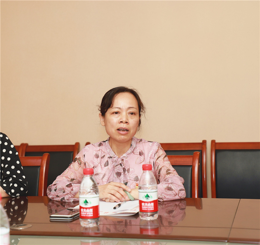▲魚峰區(qū)兩新黨工委副書記莫翔芬座談交流