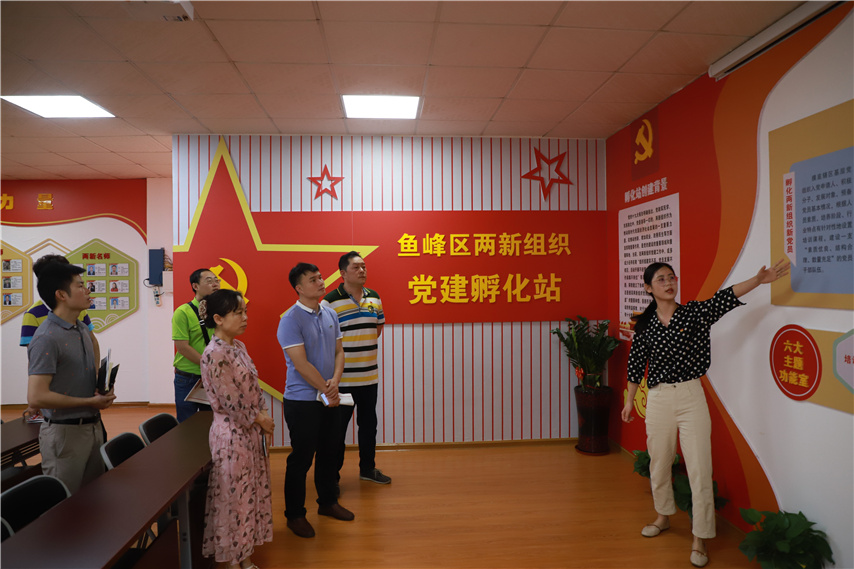 ▲城中區(qū)委組織部副部長、兩新黨工委書記周芳睿一行蒞臨孵化站調(diào)研指導(dǎo)