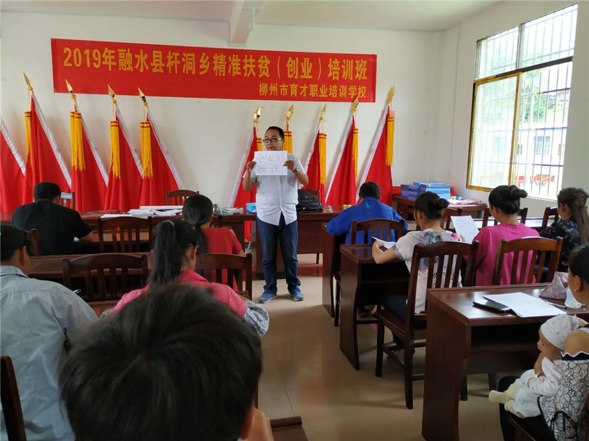 在柳州兩新組織黨建孵化中心和魚峰區(qū)兩新組織黨建孵化站的指導(dǎo)和推動下,廣西育才教育集團(tuán)旗下柳州市育才職業(yè)培訓(xùn)學(xué)校,持續(xù)開展助力脫貧攻堅(jiān)的教育培訓(xùn)工作,6月16日,新一期4個精準(zhǔn)扶貧(創(chuàng)業(yè))培訓(xùn)班在融水縣桿洞鄉(xiāng)順利開班。