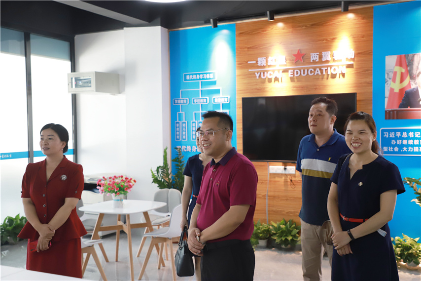 ▲黃河董事長(zhǎng)(左一)參觀育才辦學(xué)環(huán)境