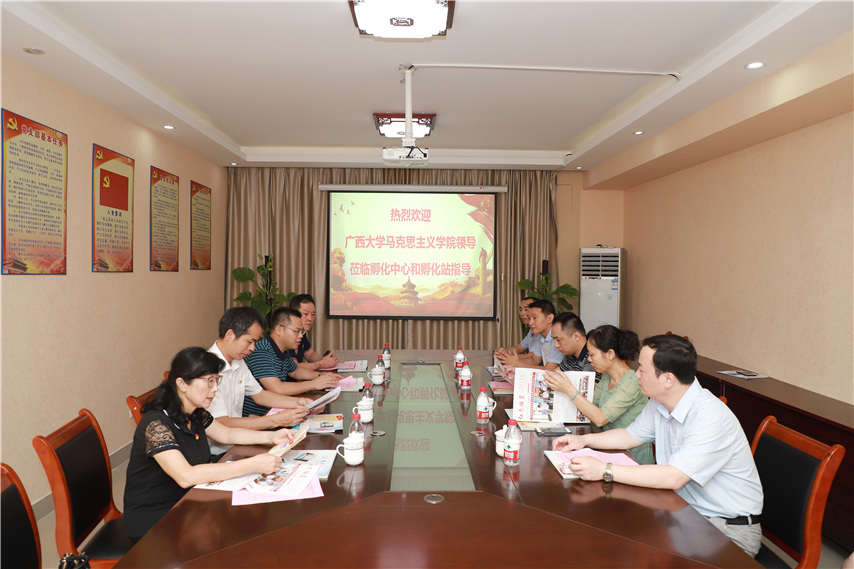 池福波科長代表市兩新黨工委和孵化中心對廣西大學馬克思主義學院黨委周瑞超書記一行的到來表示熱烈歡迎,希望能充分利用廣西大學優(yōu)質(zhì)教學資源和師資力量,切實發(fā)揮孵化中心和孵化站孵化黨員、孵化組織、孵化活動三大功能,讓“紅色搖籃”能夠孕育出更多黨的好苗子、更多優(yōu)質(zhì)黨組織、更多叫得響的黨建好品牌。