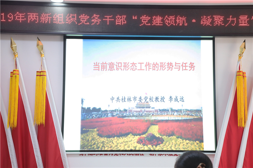 培訓(xùn)邀請(qǐng)了中共桂林市委黨校教授李成遠(yuǎn)作《當(dāng)前意識(shí)形態(tài)工作的形勢與任務(wù)》專題講授,李教授為大家分析了當(dāng)前在意識(shí)形態(tài)方面存在的機(jī)遇與挑戰(zhàn),闡述了中國意識(shí)形態(tài)安全所面臨的主要問題,提出了新形勢下維護(hù)我國意識(shí)形態(tài)安全的基本途徑。