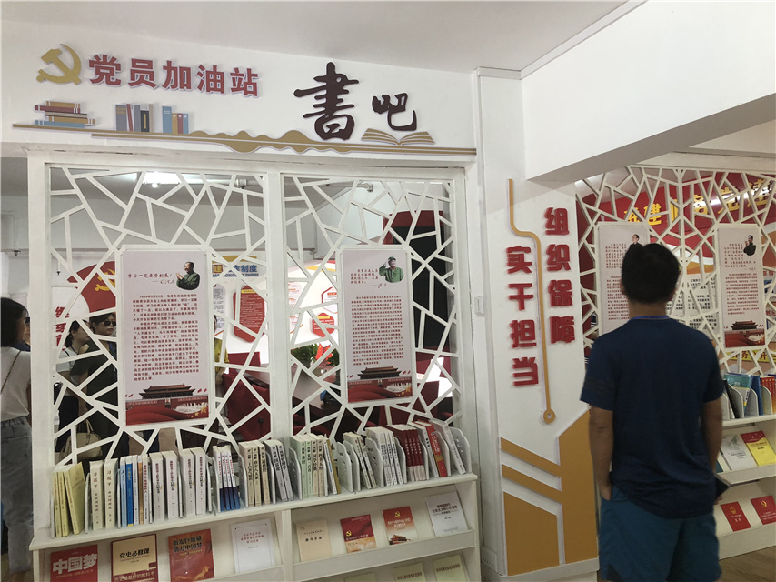 ▲現(xiàn)場教學(xué):參觀“黨員加油站”