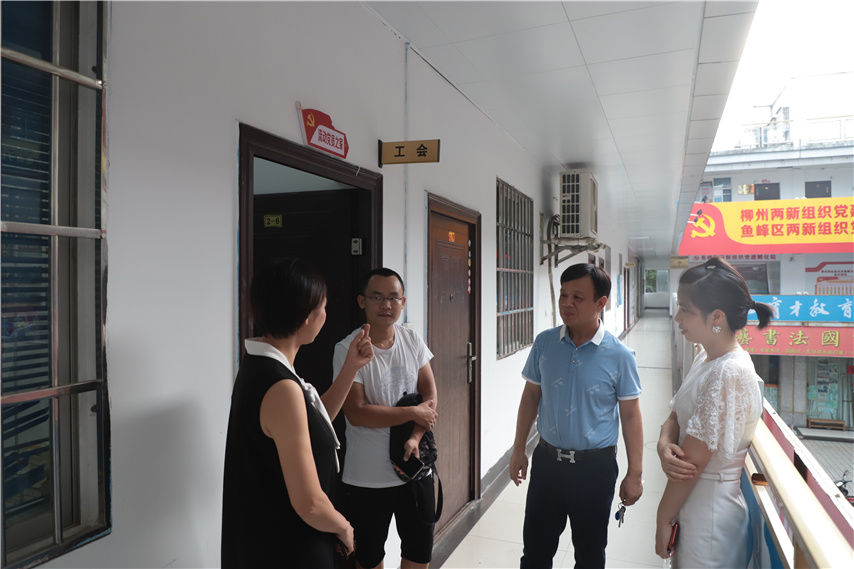 ▲魚峰區(qū)總工會(huì)副主席伍良(左二)指導(dǎo)工會(huì)工作