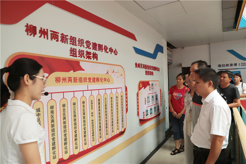 8月2?2日上午,北海?市銀海區(qū)黨?建培訓(xùn)班學(xué)?員一行5?0人在柳?州市紅?色學(xué)院培?訓(xùn)期?間,由北海市銀?海區(qū)?委組織部副部?長、兩新組?織黨?工委書?記、基?層辦主任吳家?順帶?隊到柳州兩新組織黨建孵?化中心和魚峰區(qū)兩新組織黨建孵化站考察交?流,魚峰區(qū)兩新黨建孵化站辦公室主任、集團(tuán)聯(lián)合黨委委員、培訓(xùn)學(xué)院副院長趙?彬陪同考察,孵化站辦公室副主任楊培作解說。