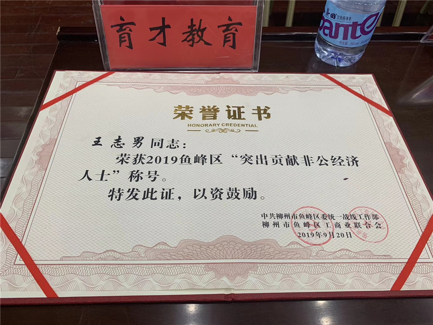 9月20日下午,魚峰區(qū)“百家優(yōu)秀民營企業(yè)和百名突出貢獻非公經(jīng)濟人士”表揚大會暨發(fā)展壯大民營經(jīng)濟動員大會在柳州市魚峰區(qū)政府召開,會上,魚峰區(qū)委書記唐作斌等區(qū)委領(lǐng)導(dǎo)對非公經(jīng)濟作出的貢獻給予了高度評價,并對今后的非公經(jīng)濟發(fā)展方向等作了重要講話,會議對轄區(qū)優(yōu)秀民營企業(yè)和百名突出貢獻非公經(jīng)濟人士進行了表彰。育才集團聯(lián)合黨委副書記、副總經(jīng)理王志男榮獲“2019魚峰區(qū)突出貢獻非公經(jīng)濟人士”榮譽稱號。