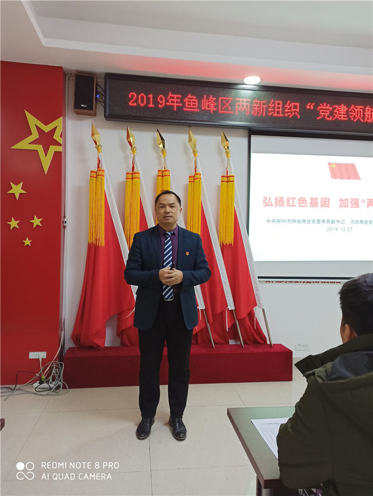 ▲柳州市異地商會黨委常務(wù)副書記、柳州市河池商會黨支部書記陸高飛與學(xué)員分享了黨建工作的經(jīng)驗(yàn)做法。