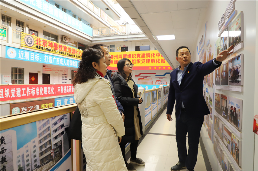 1月14日,桂林市委組織部部務(wù)會成員、兩新組織黨工委專職副書記陳薇薇,桂林市委組織部組織四科副科長詹繼祥一行5人蒞臨柳州市兩新組織黨建孵化中心和魚峰區(qū)兩新組織黨建孵化站座談交流,柳州市委組織部組織五科科長陸軍,魚峰區(qū)兩新組織黨工委副書記莫祥芬,集團(tuán)聯(lián)合黨委委員、孵化站辦公室主任、培訓(xùn)學(xué)院副院長趙彬陪同座談交流。