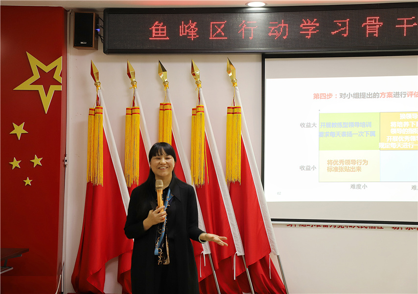 培訓(xùn)邀請(qǐng)了柳州市委黨校韋利如副教授進(jìn)行授課,韋教授介紹了行動(dòng)學(xué)習(xí)法的定義、要素及工具方法意義,行動(dòng)學(xué)習(xí)是一種在小組成員互相支持下,致力于解決問題的學(xué)習(xí)和反思的過程。