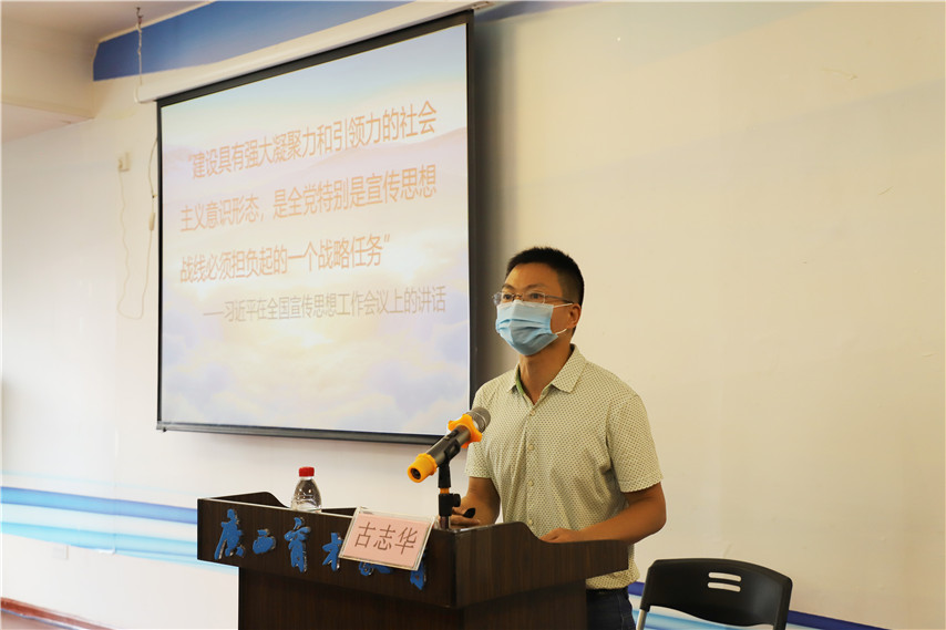 本次授課邀請了柳州職業(yè)技術(shù)學(xué)院馬克思主義學(xué)院副教授古志華,古教授以《建設(shè)具有強大凝聚力和引領(lǐng)力的社會主義意識形態(tài)》為學(xué)員授課,圍繞意識形態(tài)工作的概念和主要內(nèi)容、當(dāng)前意識形態(tài)工作面臨的形勢和增強對意識形態(tài)工作的責(zé)任使命感三個維度,結(jié)合典型案例,全面解讀了新時代意識形態(tài)工作的內(nèi)容。