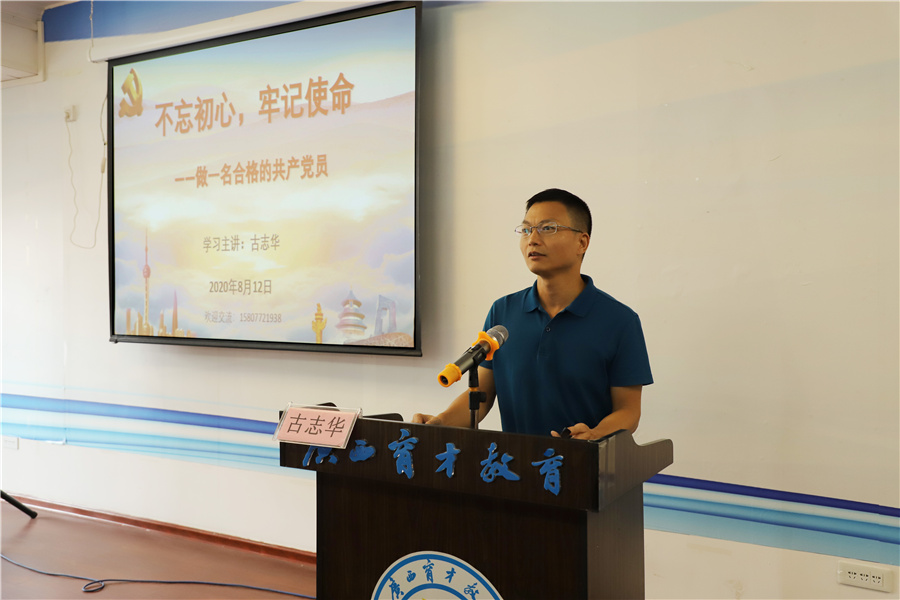 本次培訓(xùn)邀請了柳州職業(yè)技術(shù)學(xué)院馬克思主義學(xué)院副教授古志華,以《不忘初心,牢記使命——做一名合格的共產(chǎn)黨員》為題為學(xué)員授課,引導(dǎo)學(xué)員進(jìn)一步理解黨的性質(zhì)、宗旨和紀(jì)律等,自覺端正入黨動機,堅定共產(chǎn)主義理想信念,按照黨員標(biāo)準(zhǔn)嚴(yán)格要求自己,爭取早日成為一名合格的共產(chǎn)黨員。
