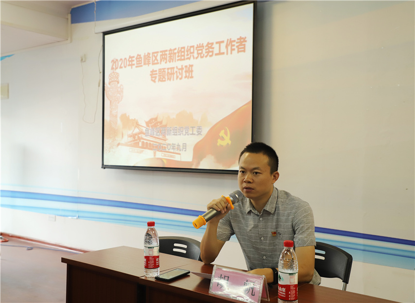 ▲魚峰區(qū)委組織部副部長、兩新黨工委書記胡帆作開班動員講話