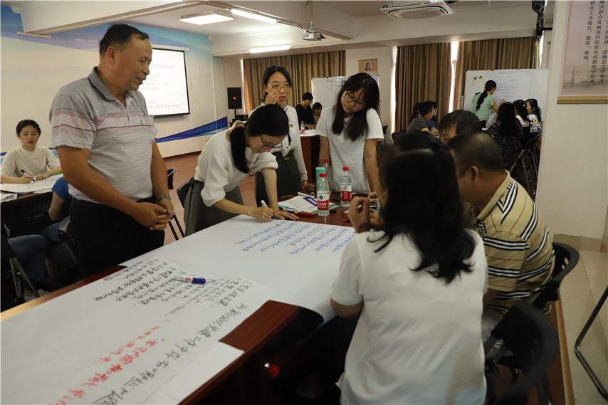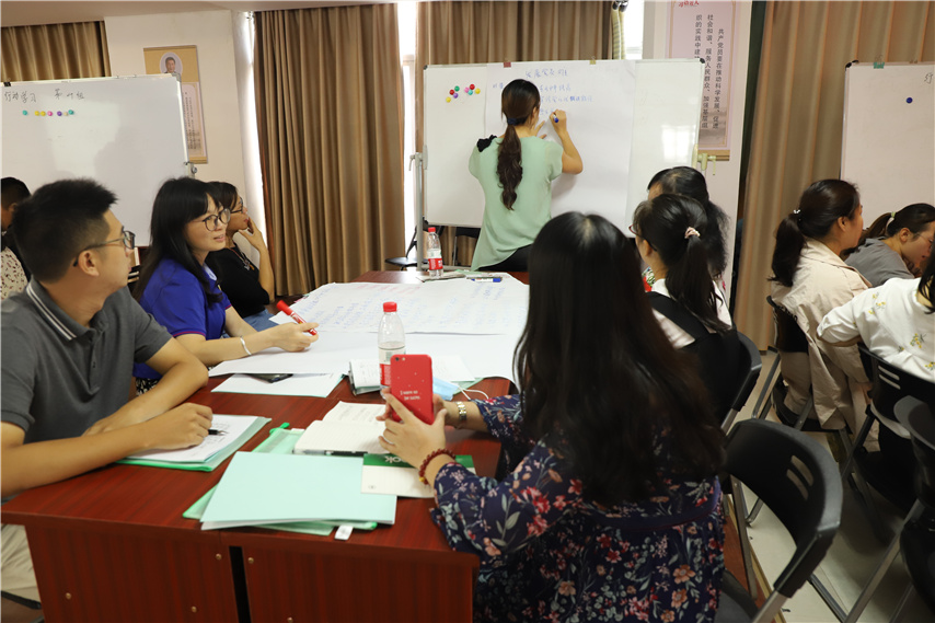 會上,參與人員分為四組,以頭腦風(fēng)暴、團(tuán)體列名、智慧墻、魚骨圖及矩陣圖等行動學(xué)習(xí)方式方法進(jìn)行深入研討,針對問題分析原因,進(jìn)行歸類。隨后,每個小組聚焦一個主要問題提出具體對策,在研討中提出兩新組織黨建工作存在的問題及對策。