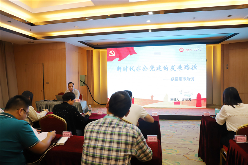 培訓(xùn)邀請柳州市委組織部二科科長池福波以《新時(shí)代非公黨建的發(fā)展路徑》為題授課,池科長以柳州市為例,對新時(shí)代如何加強(qiáng)非公企業(yè)黨建工作進(jìn)行了探究。