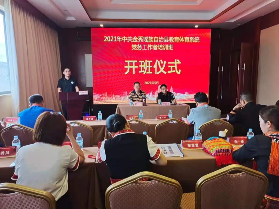 5月17日,由中共金秀瑤族自治縣委員會教育工作委員會主辦,魚峰區(qū)兩新組織黨校承辦的2021年金秀瑤族自治縣教育體育系統(tǒng)黨務(wù)工作者培訓(xùn)班在桂林順利開班,培訓(xùn)班為期5天,中共金秀瑤族自治縣委員會教育工作委員會專職副書記、教育體育局黨組成員李昌才,魚峰區(qū)兩新組織黨校副校長、培訓(xùn)學(xué)院院長趙彬以及來自金秀瑤族自治縣各學(xué)校共60余名黨務(wù)工作者參加了開班儀式。