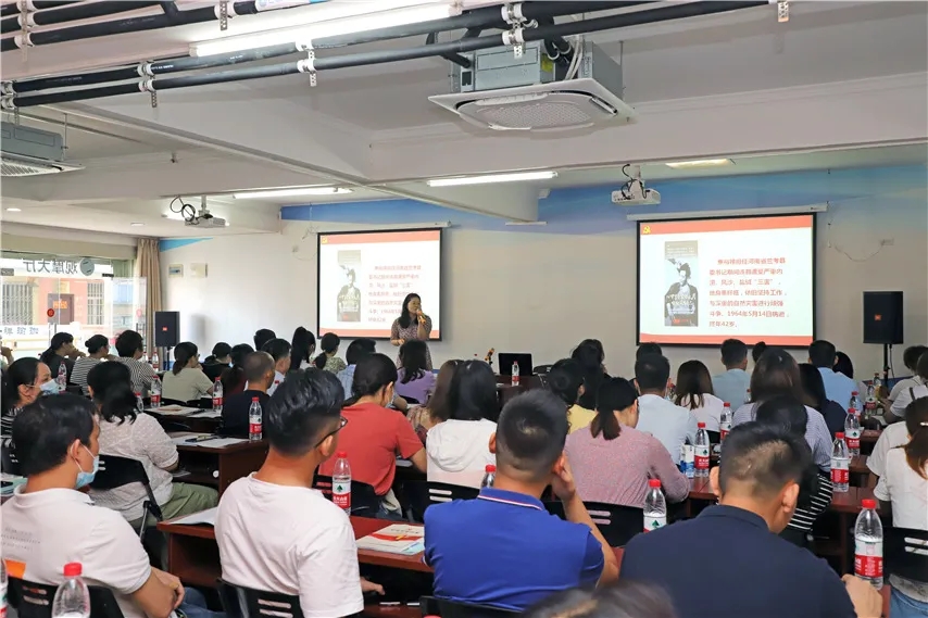 柳州職業(yè)技術(shù)學(xué)院馬克思主義學(xué)院副教授,柳州市黨史國(guó)史宣講專家組成員馮新宇老師作《在歌聲中學(xué)黨史》專題講授,通過(guò)對(duì)革命音樂(lè)作品的歷史背景,創(chuàng)作特色以及歌詞本身的研究,幫助學(xué)員加深對(duì)黨史的了解和理解。