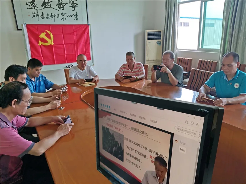 ▲柳州潮汕商會黨支部黨員觀看黨課學(xué)習(xí)