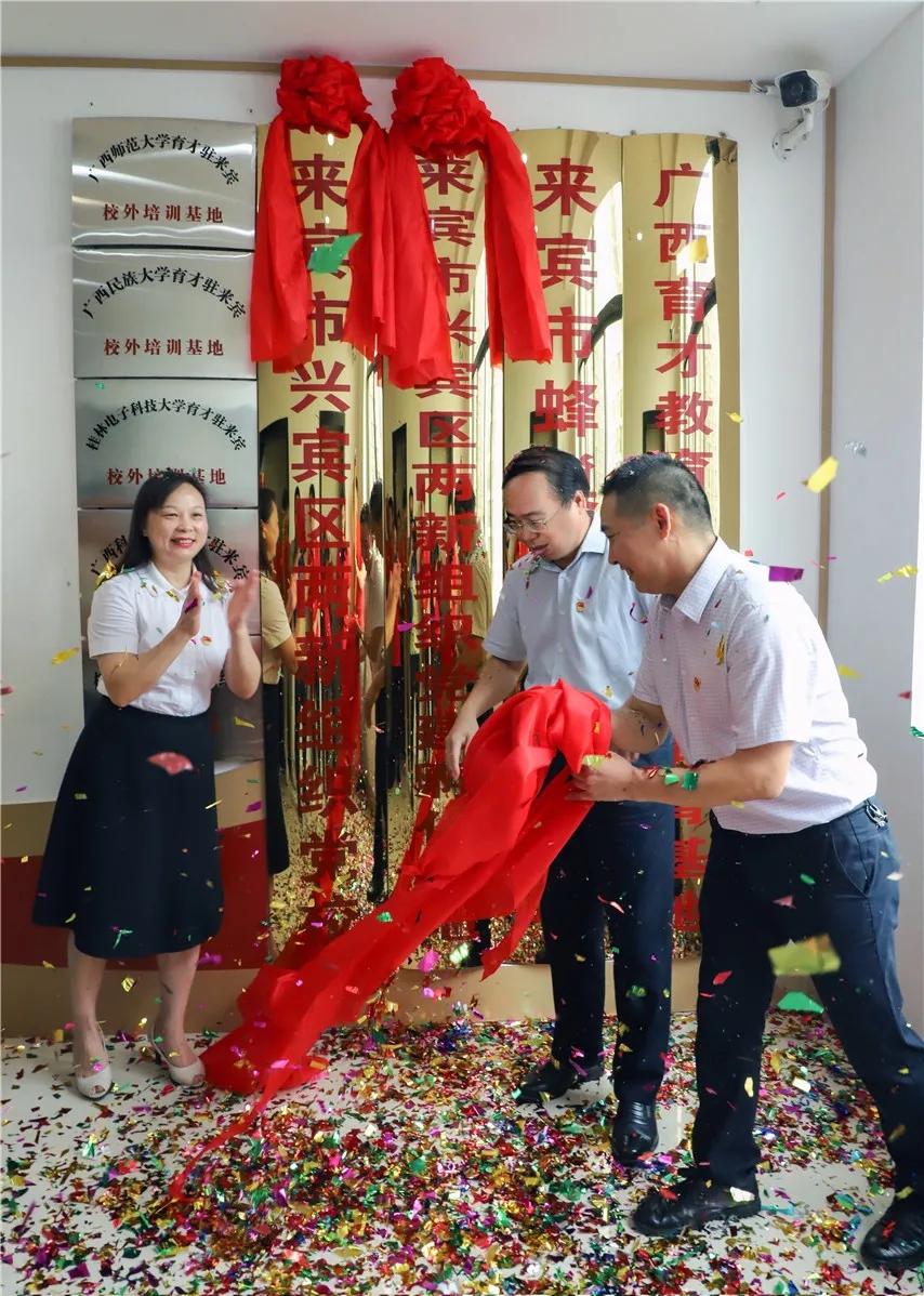 來賓市人大常委會副主任、興賓區(qū)區(qū)委書記周靈,市委組織部副部長、市兩新組織黨工委書記熊愛武,興賓區(qū)委常委、組織部部長房紅波,興賓區(qū)委組織部副部長、區(qū)兩新組織黨工委書記、區(qū)兩新組織黨校校長羅祥雄共同為興賓區(qū)兩新組織黨校、兩新組織黨建孵化基地揭牌。