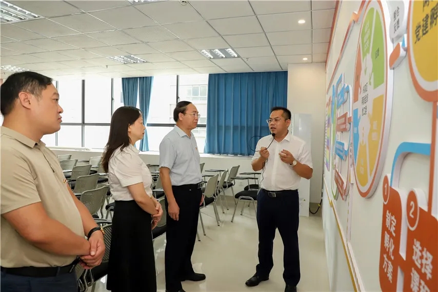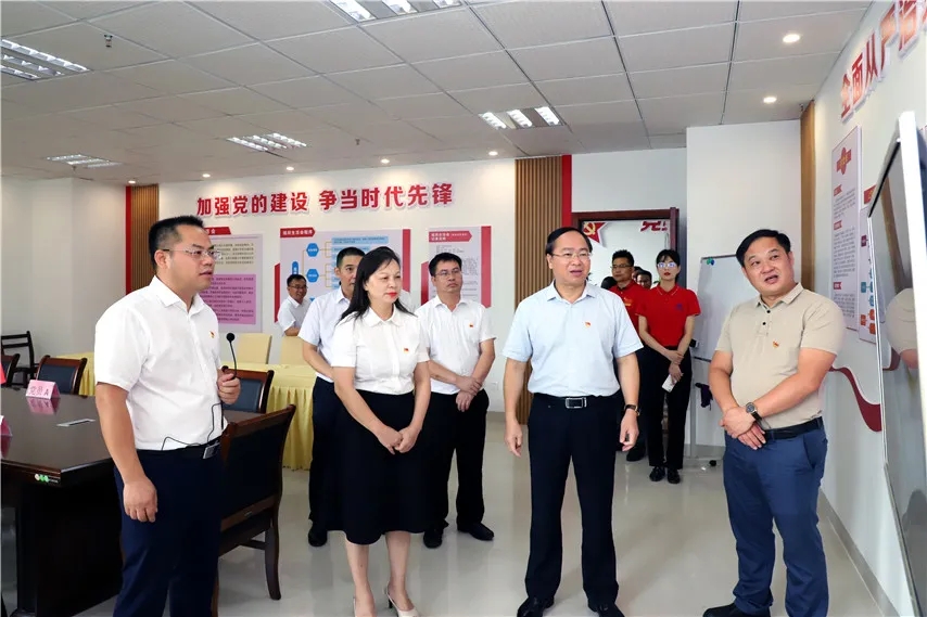 隨后,領導們實地調研了興賓區(qū)兩新組織黨校、兩新組織黨建孵化基地,集團黨委書記、董事長、興賓區(qū)兩新組織黨校常務副校長蔣華向嘉賓介紹了黨校及孵化基地的基本情況。