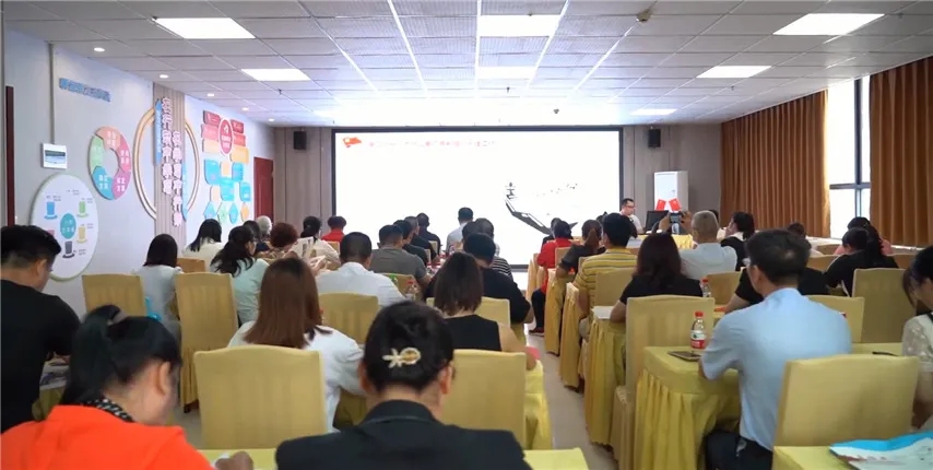 揭牌儀式后,城北街道黨工委組織委員覃羅圓為全區(qū)50多名兩新組織黨組織書記和黨務工作者作了第一期專題業(yè)務培訓。