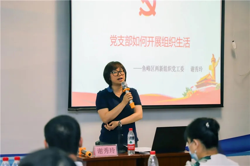 ▲魚峰區(qū)兩新組織黨工委黨群工作者謝秀玲作《黨支部如何開展組織生活》授課。