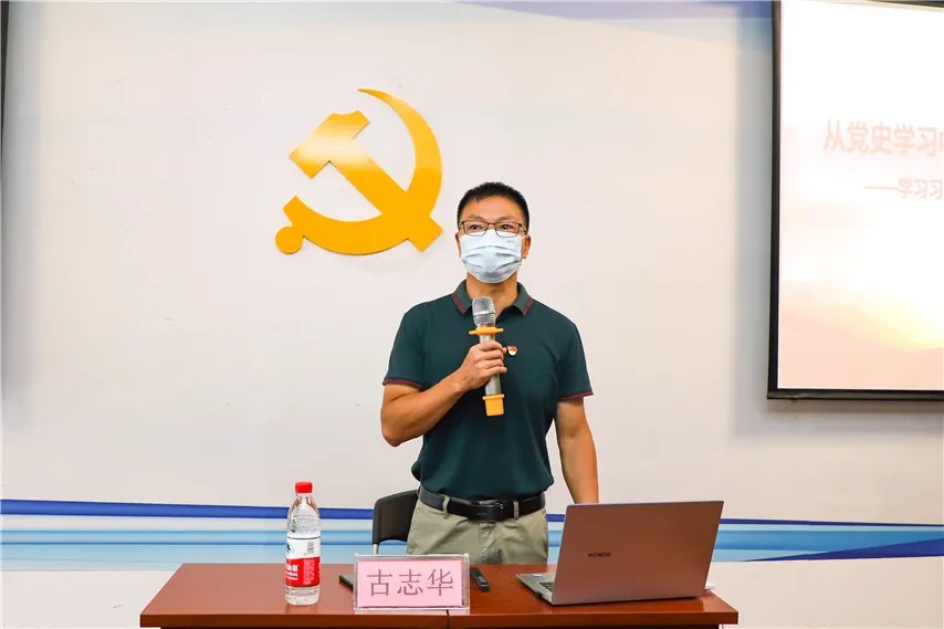 ▲古志華副教授以《以史為鑒,開創(chuàng)未來,向第二個(gè)百年奮斗目標(biāo)進(jìn)軍——學(xué)習(xí)習(xí)近平總書記“七一”重要講話精神》為題進(jìn)行授課