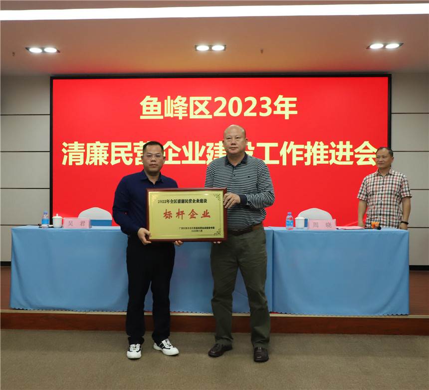 會(huì)上,魚峰區(qū)政協(xié)副主席、工商聯(lián)主席戴翔,魚峰區(qū)委統(tǒng)戰(zhàn)部副部長、工商聯(lián)黨組書記周曉為獲得魚峰區(qū)清廉民營企業(yè)建設(shè)標(biāo)桿企業(yè)的企業(yè)頒發(fā)獎(jiǎng)牌,我集團(tuán)也是獲此殊榮的企業(yè)之一。