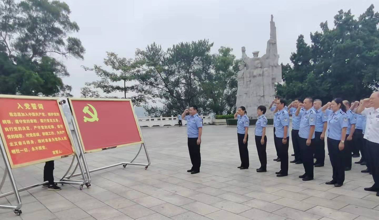 ?早?家整裝待發(fā)來到百?起義紀(jì)念碑前,向革命先烈敬獻(xiàn)花籃,瞻仰革命烈士紀(jì)念碑,深切緬懷?命先烈。隨后,全體?員在紀(jì)念碑前莊嚴(yán)宣誓,重溫了?黨誓詞和?警誓詞,牢記對黨和??的忠誠之?。