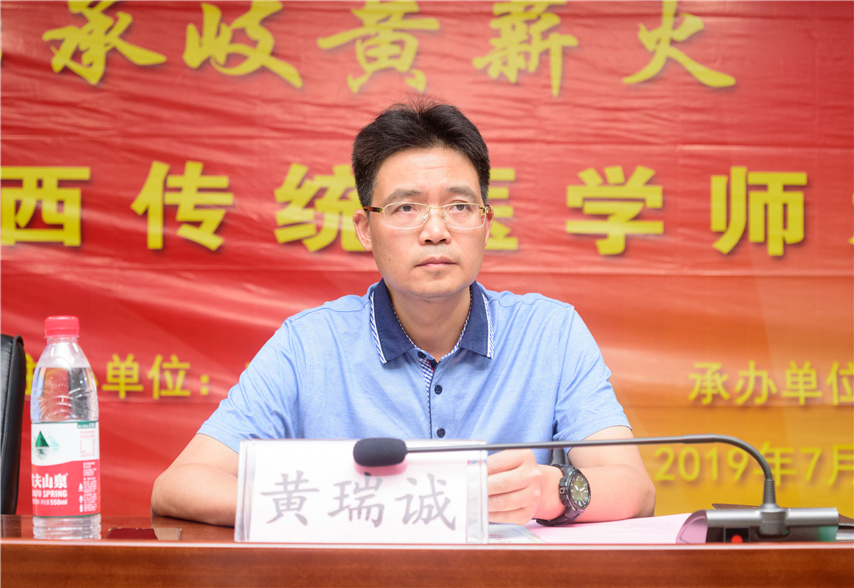 ▲廣西中醫(yī)藥大學(xué)成教院副院長(zhǎng)黃瑞誠(chéng)主持儀式