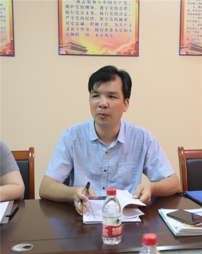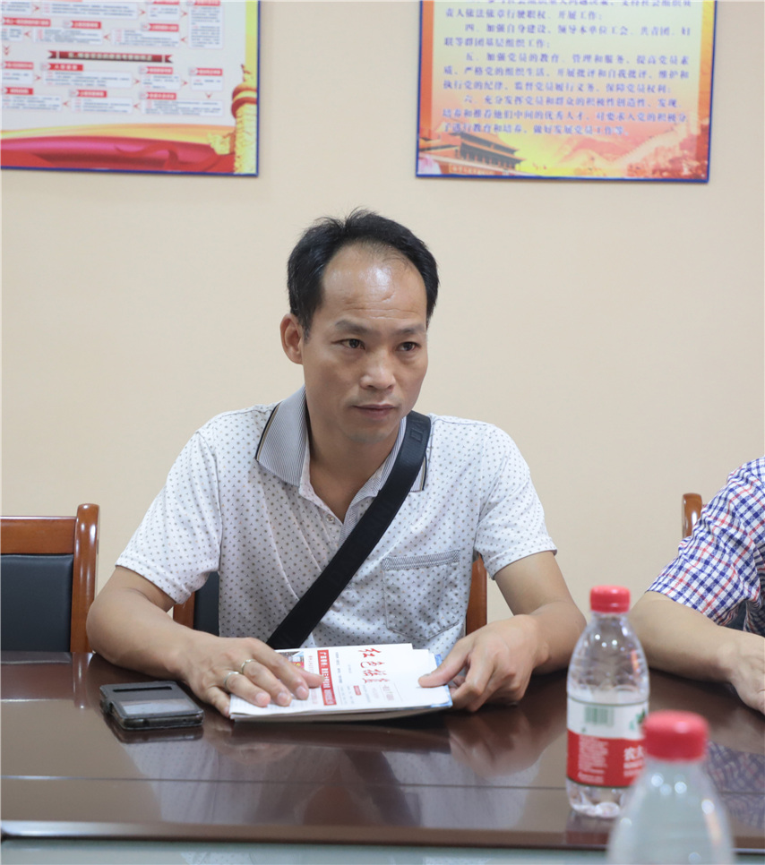 ▲來賓市興賓區(qū)紀(jì)委監(jiān)委派駐組織部紀(jì)檢監(jiān)察組副組長黃領(lǐng)在座談會(huì)上講話