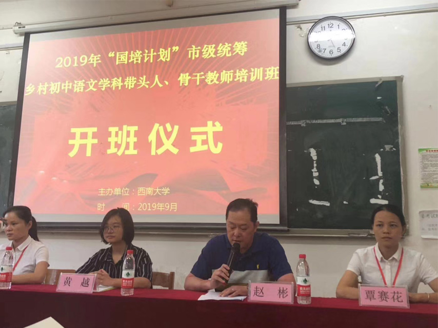 9月23日,由柳州市育才職業(yè)培訓(xùn)學(xué)校舉辦的柳州市2019年“國培計劃”鄉(xiāng)村初中語文學(xué)科帶頭人、骨干教師研修班在廣西科技大學(xué)科教樓正式開班,此次培訓(xùn)為期7天,市教育局國培辦黃越老師、集團(tuán)聯(lián)合黨委委員、培訓(xùn)學(xué)院副院長趙彬、以及來自鹿寨縣、柳城縣的50名教師參加了開班儀式。