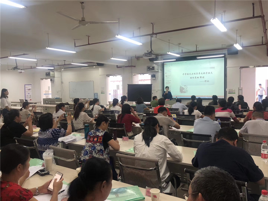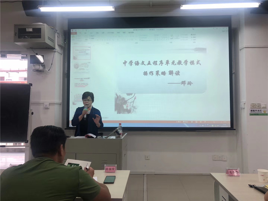 開班儀式結(jié)束后,桂林師范高等??茖W(xué)校鄧玲教授為學(xué)員作《中學(xué)語文五程序單元教學(xué)模式操作策略解讀》專題授課。