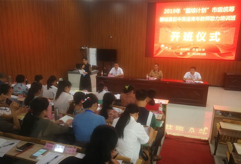 10月11日,由西南大學(xué)網(wǎng)絡(luò)與繼續(xù)教育學(xué)院主辦、柳州市育才職業(yè)培訓(xùn)學(xué)校承辦的柳州市2019年“國(guó)培計(jì)劃”市級(jí)統(tǒng)籌柳城縣初中英語青年教師助力培訓(xùn)班在柳城縣實(shí)驗(yàn)中學(xué)正式開班,集團(tuán)聯(lián)合黨委委員、培訓(xùn)學(xué)院副院長(zhǎng)趙彬以及來自柳城縣各鄉(xiāng)鎮(zhèn)的60余名初中英語青年教師參加了開班儀式,儀式由培訓(xùn)學(xué)院主任蘭霄主持。