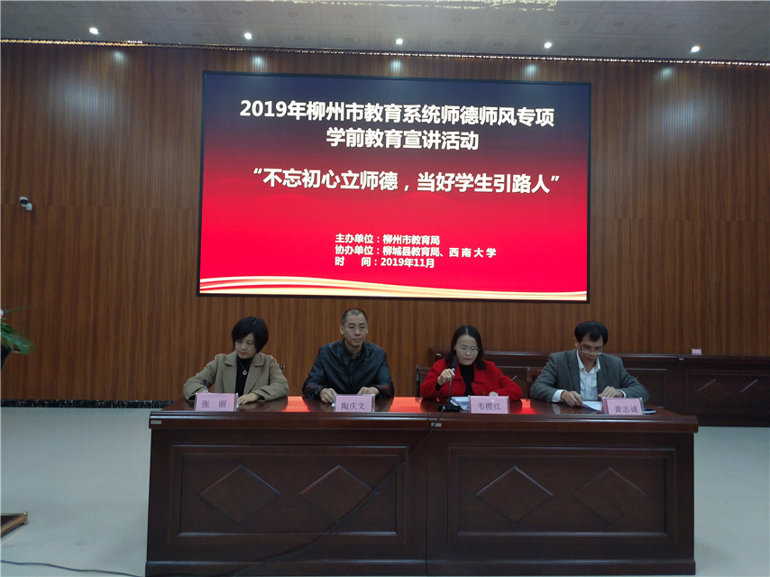 近日,“不忘初心立師德,當(dāng)好學(xué)生引路人”2019年柳州市教育系統(tǒng)師德師風(fēng)五縣巡回宣講活動順利結(jié)束。通過宣講活動,推動教師成為先進思想文化的傳播者、黨執(zhí)政的堅定支持者、學(xué)生健康成長的指導(dǎo)者。通過宣講活動,大力弘揚社會主義核心價值觀,激勵廣大教師不忘初心,立德樹人,人人爭當(dāng)“最美教師”,為培養(yǎng)擔(dān)當(dāng)民族復(fù)興大任的時代新人作出應(yīng)有的貢獻。2019年柳州市“國培計劃”市級統(tǒng)籌教師培訓(xùn)由柳州市育才職業(yè)培訓(xùn)學(xué)校承辦。