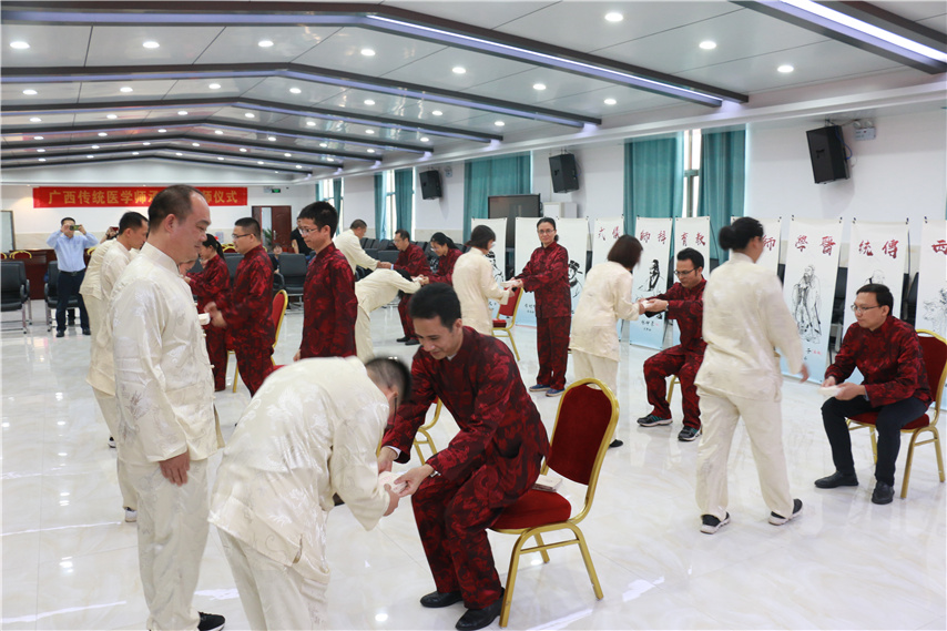 11月3日,由廣西中醫(yī)藥大學主辦,欽州市中醫(yī)醫(yī)院、廣西育才教育集團承辦的廣西傳統(tǒng)醫(yī)學師承教育第十四期師承拜師儀式在欽州市中醫(yī)醫(yī)院隆重舉行。廣西中醫(yī)藥大學直屬黨總支書記、成教院院長、博士生導師、二級教授韋艾凌、副院長黃瑞誠、欽州市中醫(yī)醫(yī)院副院長鄭豪芬、梁秋明、集團總校校長梁國坤以及師承班第十四期的指導老師和學員代表參加了儀式。