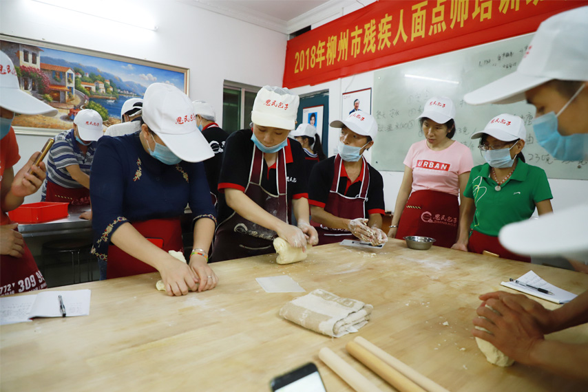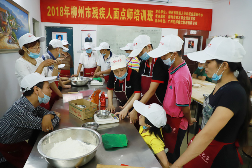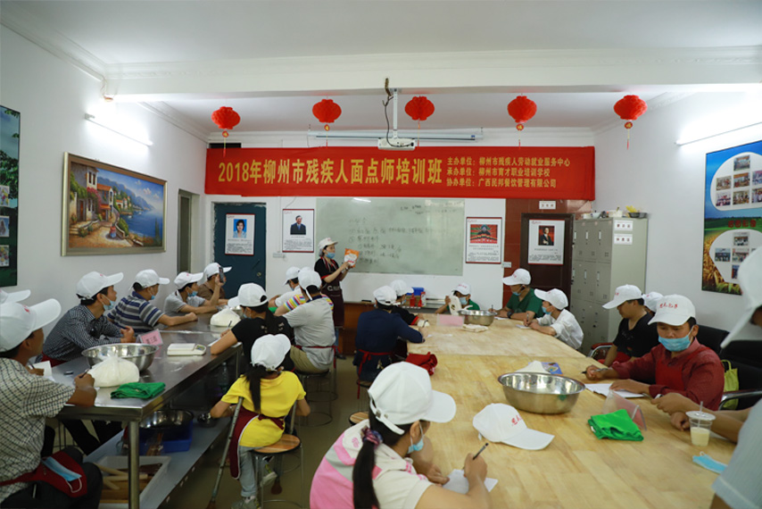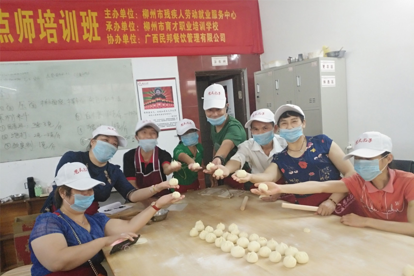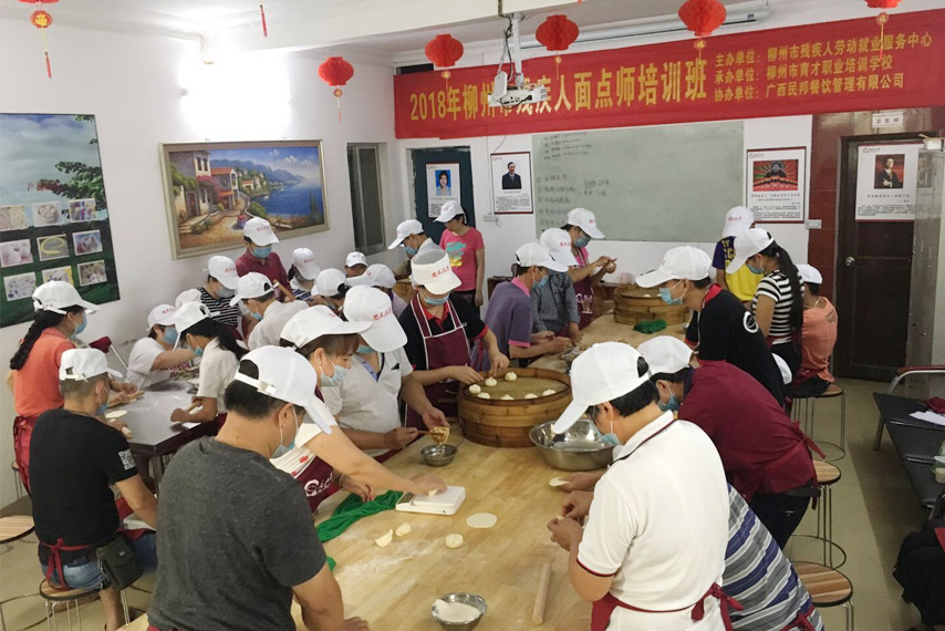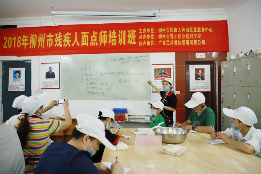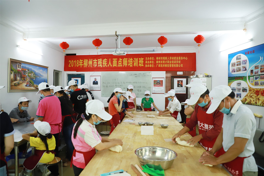 6月19日,為期5天的2018年柳州市殘疾人面點(diǎn)師培訓(xùn)班在育才柳州總部開(kāi)班,培訓(xùn)班由柳州市殘疾人勞動(dòng)就業(yè)服務(wù)中心主辦、柳州市育才職業(yè)培訓(xùn)學(xué)校承辦、廣西民邦餐飲管理有限公司協(xié)辦,來(lái)自柳州各城區(qū)的30余名殘疾人參加了培訓(xùn)。