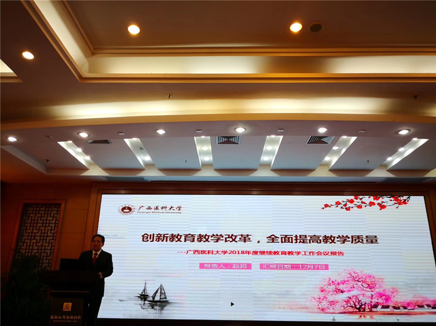 繼續(xù)教育學院院長趙邦教授作了《創(chuàng)新教育教學改革,全面提高教學質量》教學工作報告,要求各合作單位加強教學管理、提高教學質量,保持廣西醫(yī)科大學的品牌,以飽滿的熱情、扎實的作風,把廣西醫(yī)科大學繼續(xù)教育工作推上一個新的臺階。