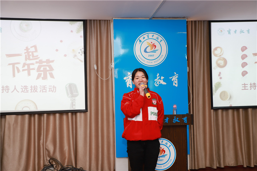 大家一邊享受著集團(tuán)工會(huì)特意準(zhǔn)備的2019年第一次下午茶慢時(shí)光,一邊現(xiàn)場觀摩選手的風(fēng)采并為之加油鼓勁。本次主持人選拔活動(dòng),共有5名選手報(bào)名參加,他們都是有主持愛好和夢(mèng)想,同時(shí)具備一定的主持能力或一定潛力的育才教職員工,活動(dòng)規(guī)定選手要在儀表儀態(tài)、形象氣質(zhì)、普通話標(biāo)準(zhǔn)、聲音適宜 、吐字準(zhǔn)確、表達(dá)流暢、臨場發(fā)揮、應(yīng)變能力、富有創(chuàng)意和時(shí)間控制等10個(gè)方面,展示自己的主持綜合能力,而集團(tuán)所有教職員工則是活動(dòng)的評(píng)委,以此作為評(píng)分的標(biāo)準(zhǔn),評(píng)選出自己喜歡的主持人。