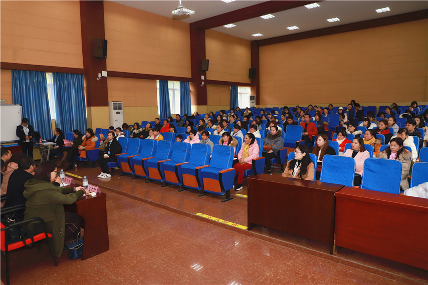育才教務(wù)部副部長莫新紅為新生作入學教育