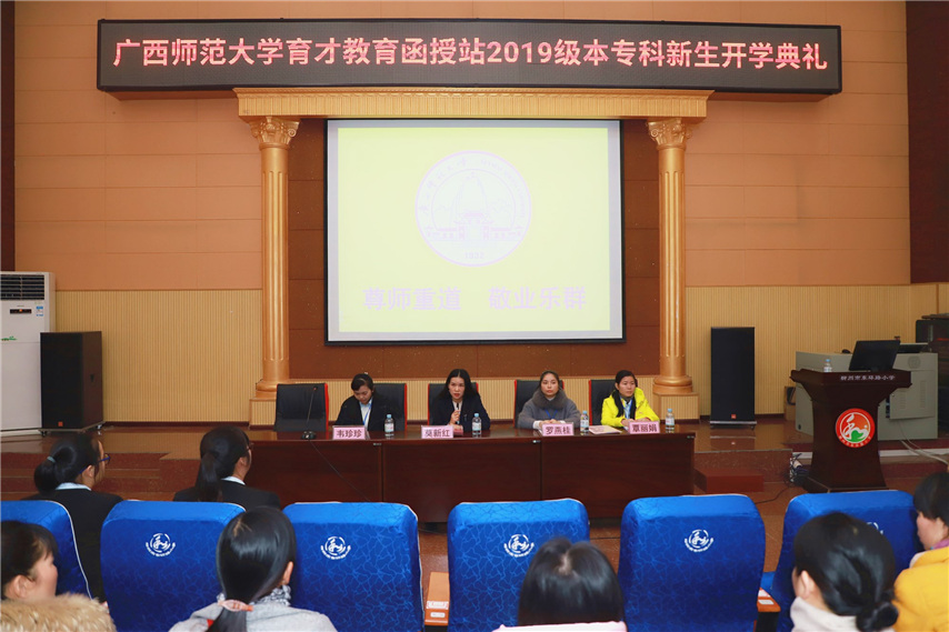 蔣華站長對2019級新生入學表示熱烈的歡迎,他介紹了廣西育才教育、廣西師范大學柳州育才函授站的基本情況、辦學優(yōu)勢和近年所獲得的榮譽,希望2019級的新同學樹立信念,克服困難,根據(jù)函授教學的特點有針對性地進行學習,要正確處理好工學矛盾,利用空余時間隨時進入學習狀態(tài)并提高學習效率,從而達到學歷提升和能力提升的雙豐收。他表示,育才教育將會更好地搭建好學校和學員之間的橋梁,通過良好的學習環(huán)境、完善的教學管理和豐富多彩的學工活動等為學員們做好服務(wù),讓各位學員在這里學習好知識,擴展人脈資源和提高自身素質(zhì)。