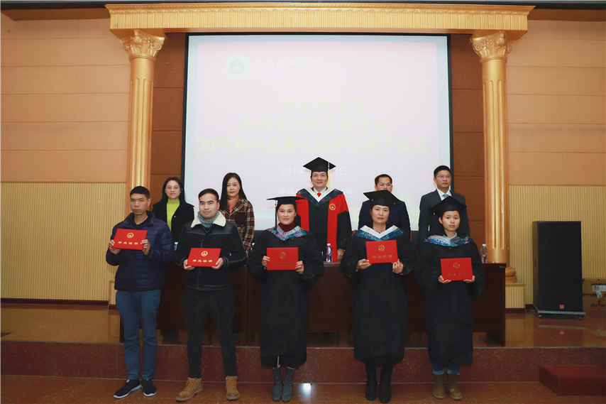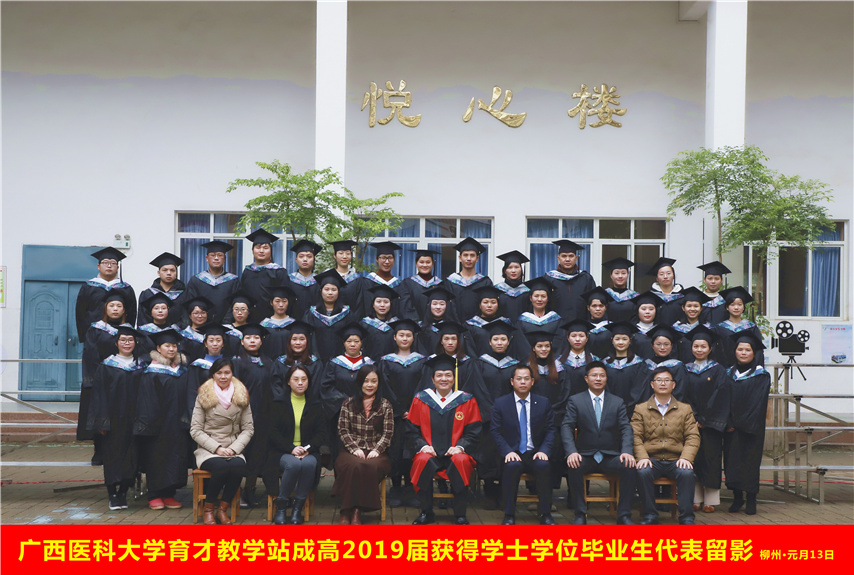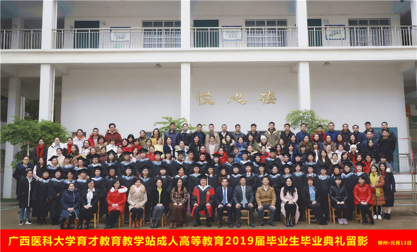 廣西醫(yī)科大學繼續(xù)教育學院院長趙邦教授向順利完成學業(yè)的畢業(yè)生們表示熱烈的祝賀并對大力支持廣西醫(yī)科大學成教工作的育才教育表示衷心的感謝。他說,這是廣西醫(yī)科大學繼續(xù)教育學院柳州育才教學站第一屆學生畢業(yè),同學們克服工作和家庭的壓力,經過艱苦學習,而今終于實現(xiàn)夢想,嘗到了收獲的喜悅,這是一筆寶貴的財富,同時也完成了一個重要提升,幸福是奮斗出來的,同學們已經用事實證明了自己的優(yōu)秀。今后成長的任務更加繁重,要重整行裝再出發(fā),占領生活和工作的C位。希望大家要繼續(xù)牢記和踐行“厚德勵志,博學弘醫(yī)”的校訓,掌握精湛的醫(yī)術,修德修醫(yī),醫(yī)國醫(yī)人,不斷升華自己的精神境界,在各自不同的工作崗位上取得新的進步、創(chuàng)造新的輝煌;要牢記醫(yī)者之使命,恪守行醫(yī)的職責,懷著一顆仁愛之心,履行懸壺濟世、救死扶傷的道義;要擁抱生活,繼續(xù)學習,擁有健康的身體和年輕的心態(tài),畢業(yè)不是學習的終止,要樹立終身學習的理念,不能在人生的繼續(xù)教育中“退群”,不管飛得多高飛得多元,希望同學們?;丶铱纯?,未來我們相約八桂大地,建設壯美廣西,共圓復興夢想。