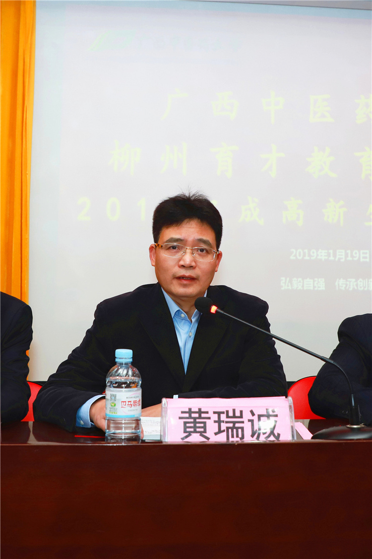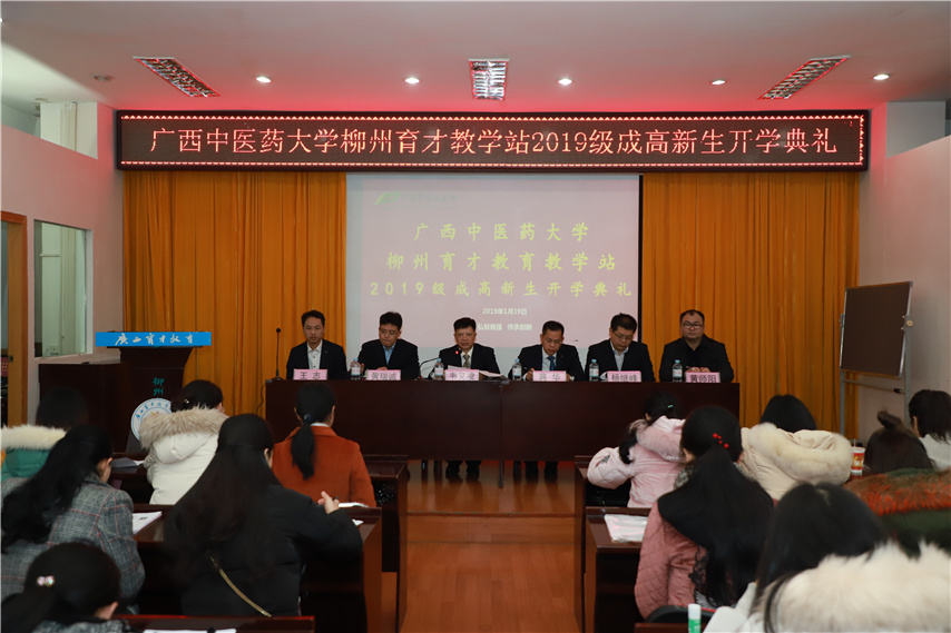 1月19日上午,廣西中醫(yī)藥大學(xué)育才教育教學(xué)站2019級(jí)成人高等教育新生開學(xué)典禮在柳州中醫(yī)院隆重舉行。廣西中醫(yī)藥大學(xué)成人繼續(xù)教育學(xué)院院長(zhǎng)、博士生導(dǎo)師、二級(jí)教授韋艾凌、副院長(zhǎng)黃瑞誠(chéng)、院長(zhǎng)助理、培訓(xùn)部主任楊繼峰、招生科科長(zhǎng)黃師陽、育才黨總支書記、教學(xué)站站長(zhǎng)蔣華、教學(xué)站副站長(zhǎng)王志以及來自柳州醫(yī)學(xué)行業(yè)的100多名新生代表參加了開學(xué)典禮。典禮由教學(xué)站副站長(zhǎng)王志主持。