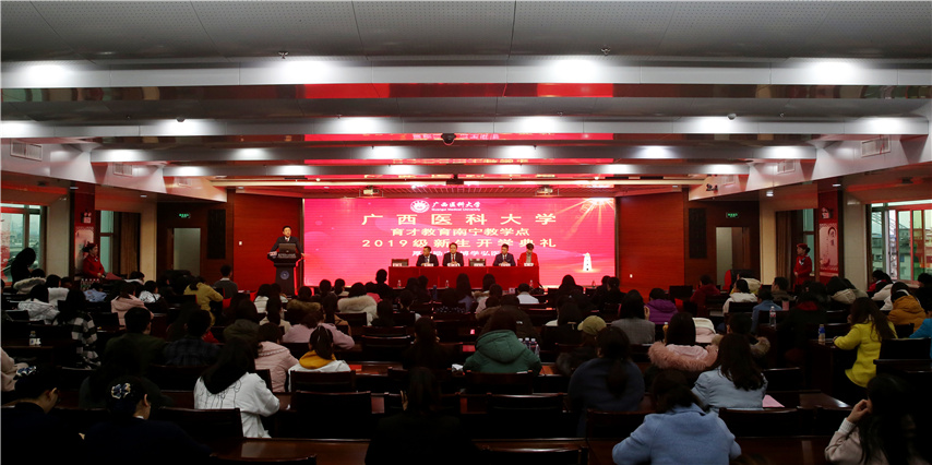 3月9日上午,廣西醫(yī)科大學育才教育南寧教學點2019級新生開學典禮在廣西醫(yī)科大學第三附屬醫(yī)院(南寧市第二人民醫(yī)院)報告廳隆重舉行。廣西醫(yī)科大學繼續(xù)教育學院院長趙邦、廣西醫(yī)科大學第三附屬醫(yī)院院長李建民、繼續(xù)教育學院辦公室主任、育才輔導站站長蔣華、副站長蔣仕榮、輔導站管理老師和200余名新生代表參加了開學典禮。典禮由南寧市第二人民醫(yī)院護理部主任汪莉主持。