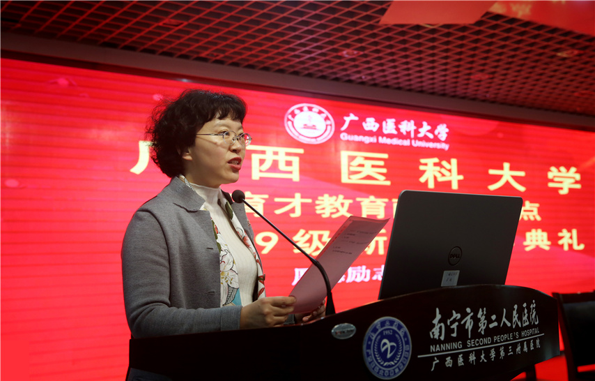 南寧市第二人民醫(yī)院護理部主任汪莉主持開學典禮