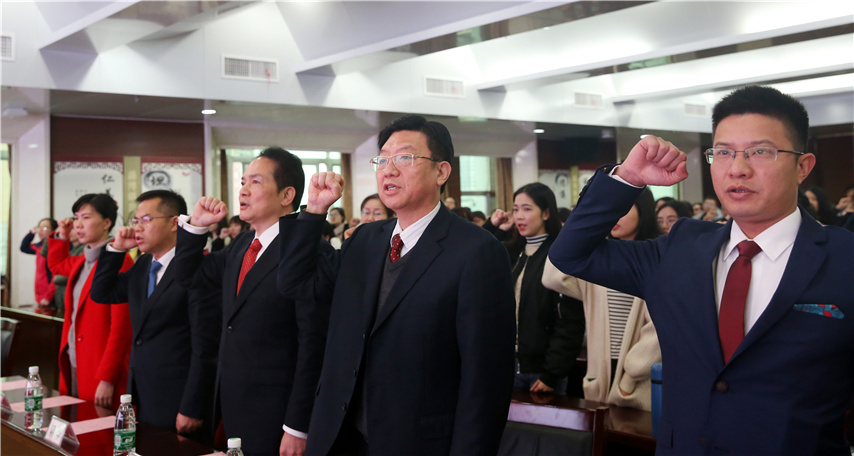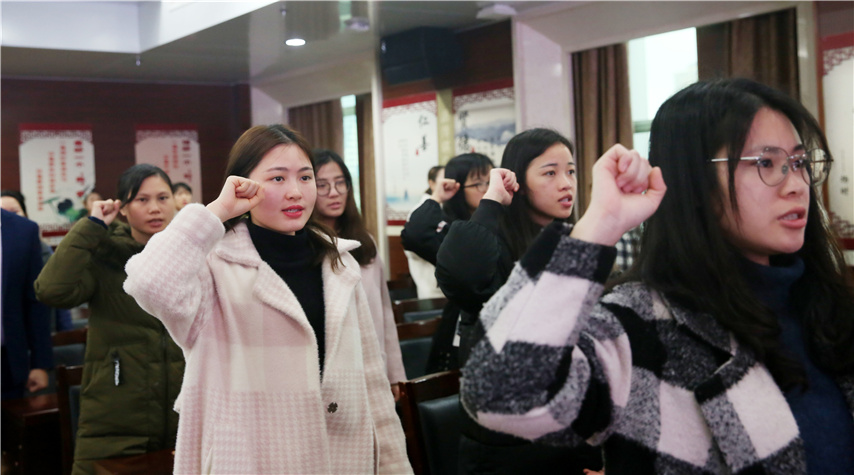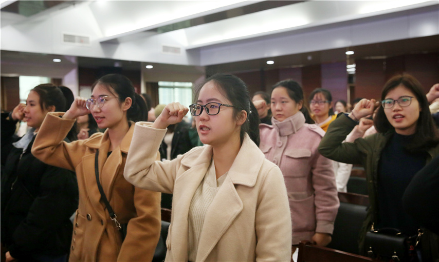 護理部主任汪莉領(lǐng)誓,全體新生宣讀醫(yī)學生誓詞。