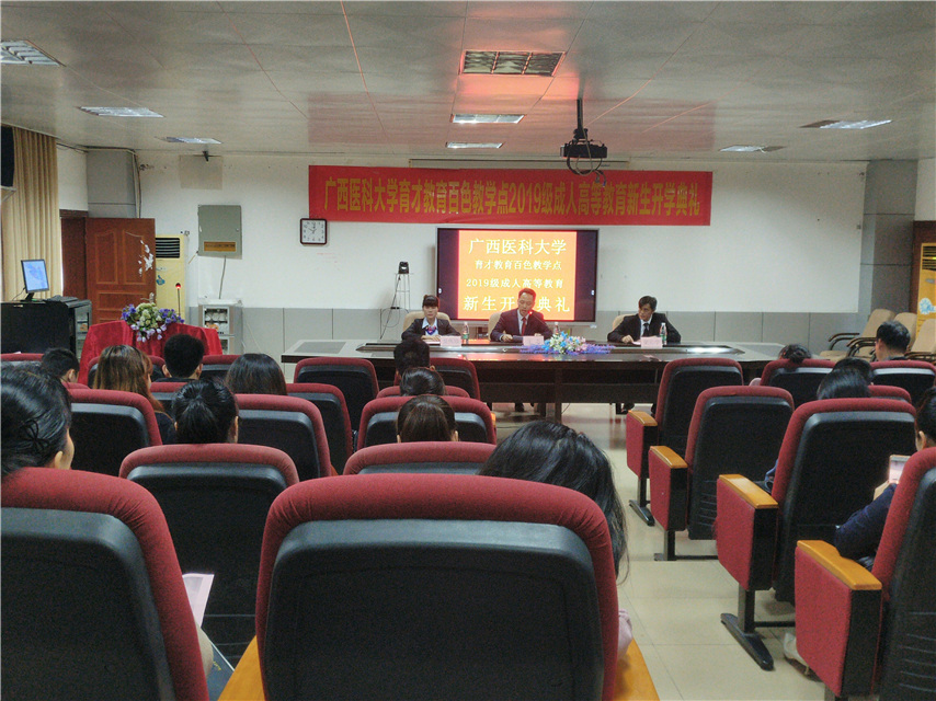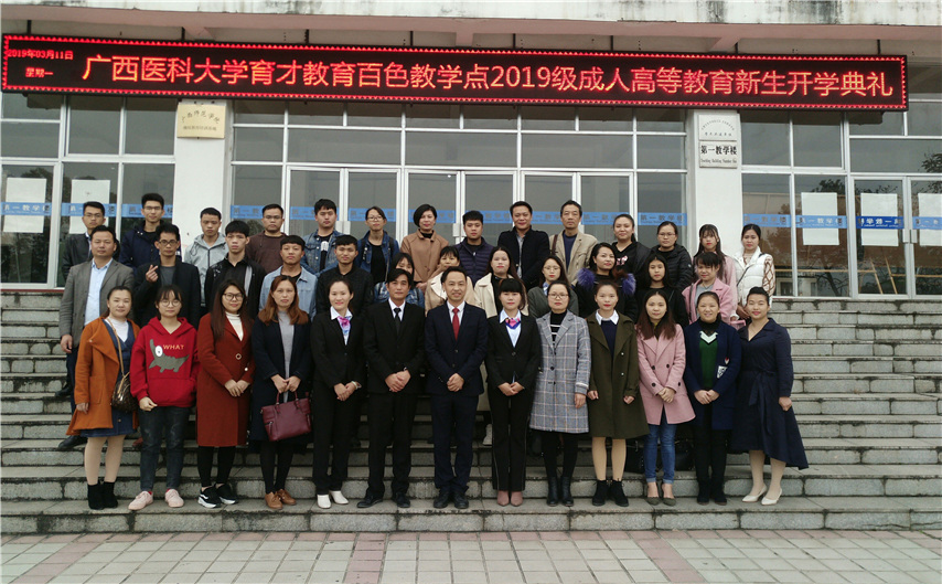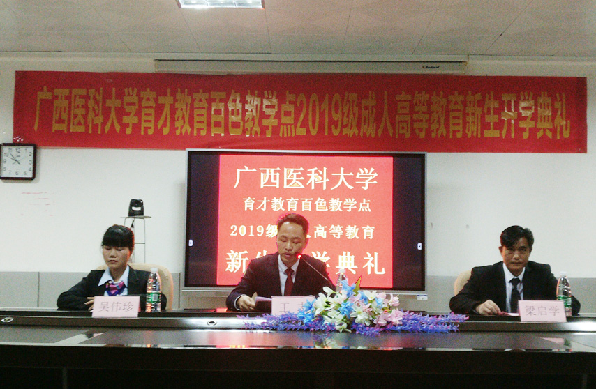 3月16日上午,廣西醫(yī)科大學育才教育百色教學點2019級成人高等教育新生開學典禮在百色分校順利舉行,集團副總經(jīng)理、南寧運營中心總監(jiān)王志、百色分校副校長梁啟學、教學管理老師吳偉珍、李國紅以及近40名新生代表參加了典禮,典禮由梁啟學老師主持。