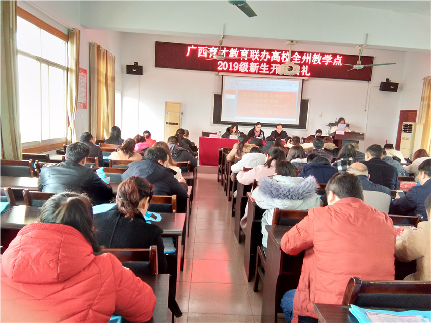 3月10日上午,育才聯(lián)辦高校全州教學點2019級成人高等教育新生開學典禮在全州縣委黨校教學樓3樓順利舉行,集團總校副校長李彩梅、桂林運營中心負責人、教學管理老師胡靜、肖蘭、李彩玲以及近100名新生代表參加了典禮,典禮由肖蘭老師主持。