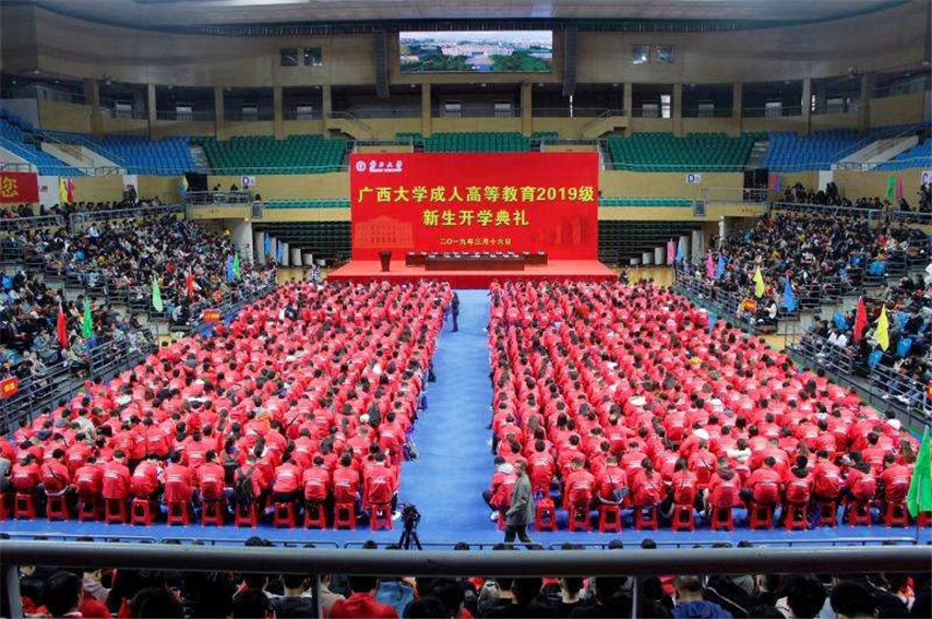 3月16日,廣西大學(xué)2019級(jí)成人高等教育新生開(kāi)學(xué)典禮在西大西校園體育館舉行。校級(jí)領(lǐng)導(dǎo)黨委常委、總會(huì)計(jì)師寧旭初出席典禮并講話,繼續(xù)教育學(xué)院院長(zhǎng)蘇兆成、教師代表、各函授站(教學(xué)點(diǎn))負(fù)責(zé)人、老生代表和校本部全體新生共4000余人參加了典禮,育才函授站站長(zhǎng)蔣華及南寧總部老師參加了典禮。典禮由繼續(xù)教育學(xué)院院長(zhǎng)蘇兆成主持。